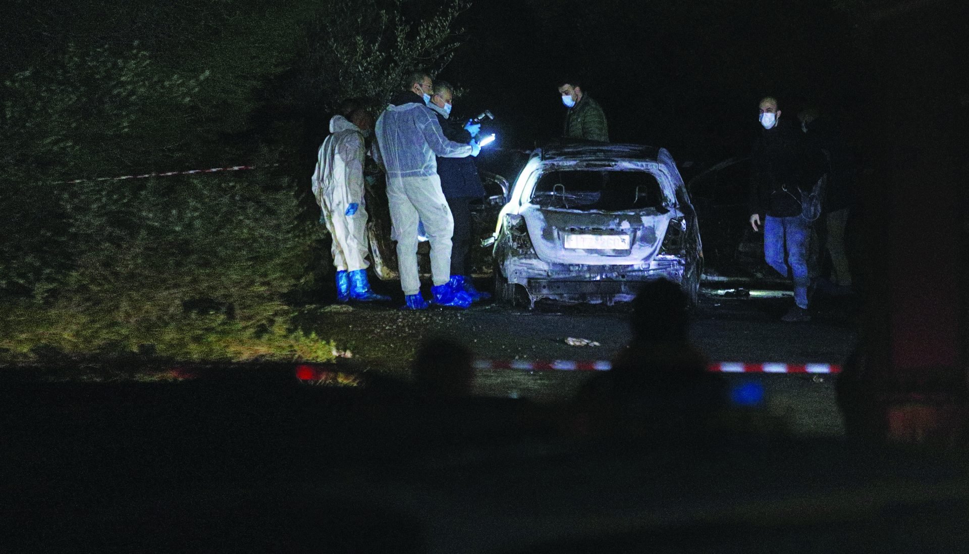 Τις πρώτες στιγμές ακολουθεί σύγχυση. Βιντεοληπτικό υλικό το οποίο αναπαράγεται έχει καταγραφεί ελάχιστα λεπτά μετά τη δολοφονία και πυρπόληση του 60χρονου επιχειρηματία. Ακατάληπτες φωνές από κόσμο που έχει μεταβεί στο σημείο, ενώ τα πρώτα πληρώματα της ΔΙΑΣ, σε απέλπιδες προσπάθειες να σβήσουν τη φωτιά. «Δεν σβήνει, έχουμε κανέναν άλλον πυροσβεστήρα, παιδιά;» ρωτάει αστυνομικός.